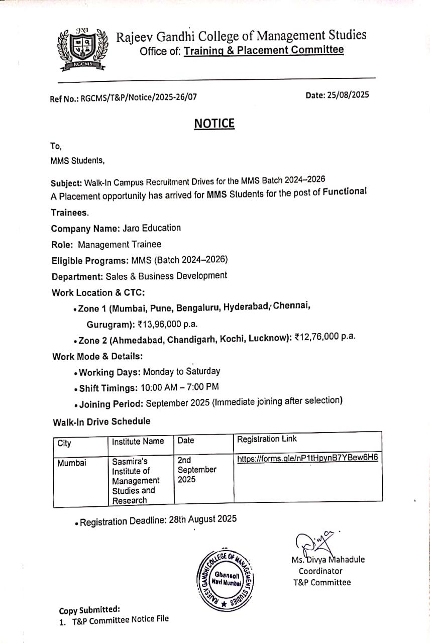 In addition to more than three years of academic experience, she has over a year of administrative experience with the Government of Rajasthan. She has taught BMS, BAMMC, M.Com. and MBA students.
