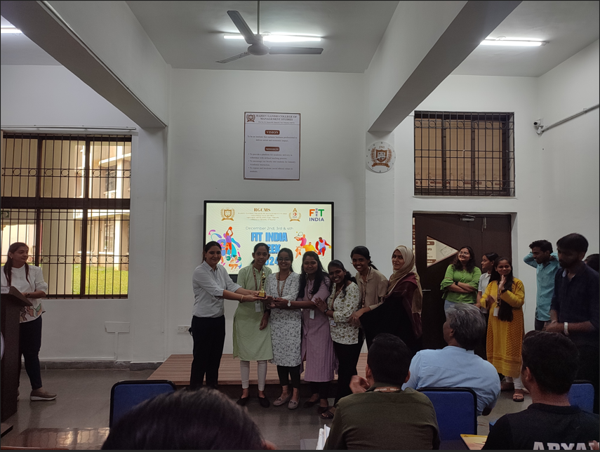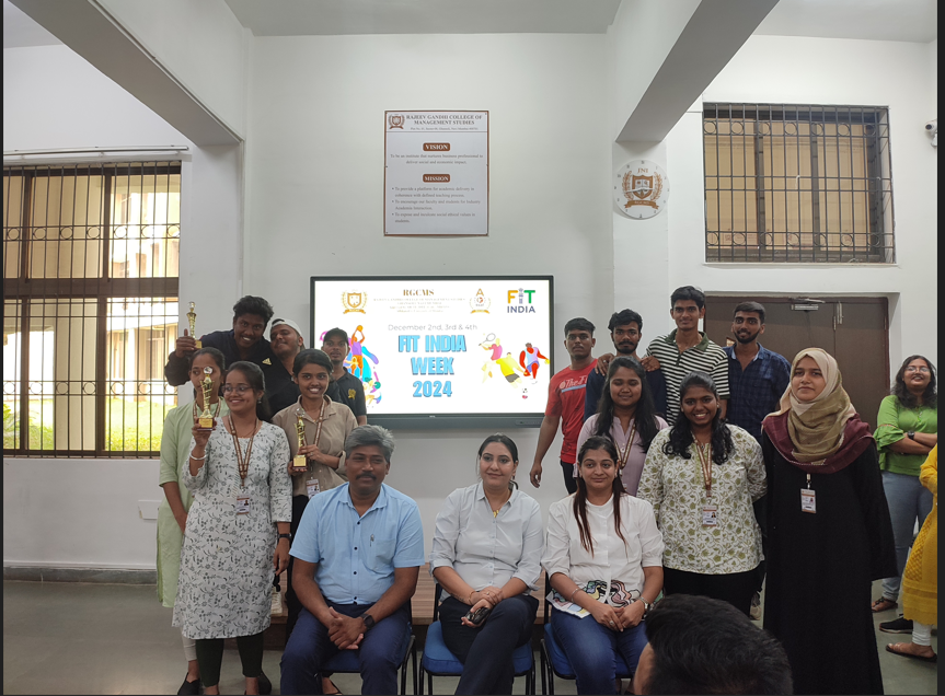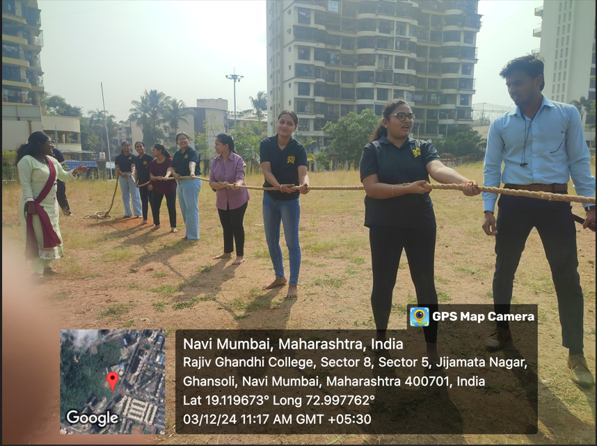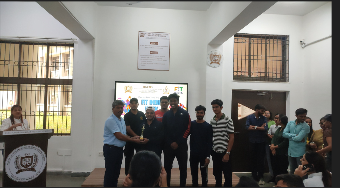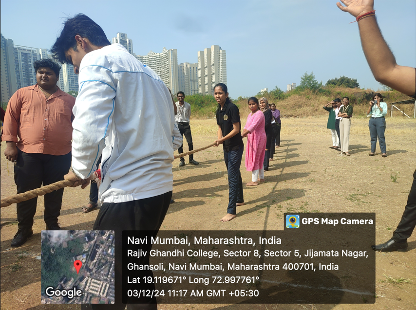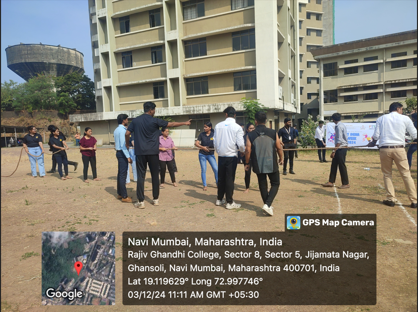 Rajeev Gandhi College of Management Studies celebrated National Youth Day with a three-day Fit India Week from January 12 to 13, 2025, organized by the Institute Innovation Council. With over 150 participants, the event featured a yoga session led by Ms. Manya Chandnani, promoting mindfulness and flexibility, followed by a Tug of War competition encouraging teamwork and strength. A friendly cricket match brought together students and staff, fostering community spirit and physical fitness. The celebration successfully raised awareness about healthy living and reinforced the college’s commitment to promoting wellness and an active lifestyle.