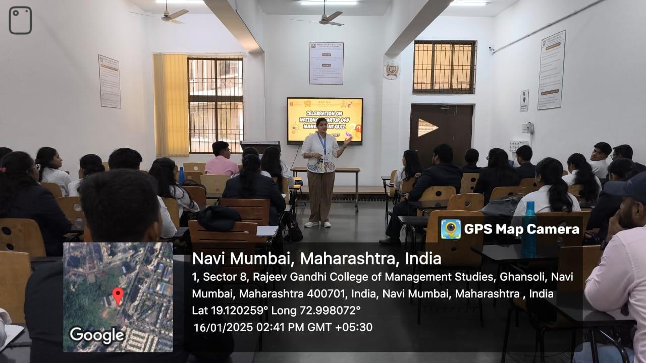 On January 16, 2025, the Department of Management Studies at RGCMS celebrated National Start-Up Day by organizing an inter-collegiate Management Quiz aimed at promoting entrepreneurial thinking among students. With 150 participants from 15 colleges across Navi Mumbai, the event featured multiple quiz rounds on business awareness, start-up trivia, case studies, and rapid-fire challenges. The celebration began with an inspiring address by Hon. Ashivini Jadhav, highlighting the role of start-ups in economic growth. Entrepreneurs and industry experts also shared valuable insights, making the event both educational and motivating. Winners were awarded certificates and prizes for their exceptional performance.
