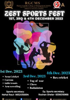 The Annual Zest Sports 2023 was held on 1st, 3rd, and 4th December with over 90 student registrations.