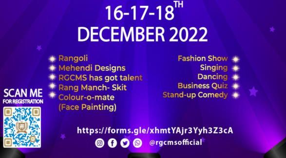 The Cultural Fest “Zest” was held on 16th–17th December 2022 at RGCMS Auditorium, organized by the Cultural