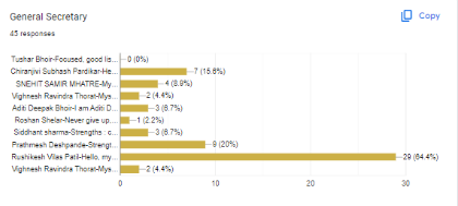 FYMMS students were notified to submit nominations, followed by circulation of the voting form for the General Secretary election.